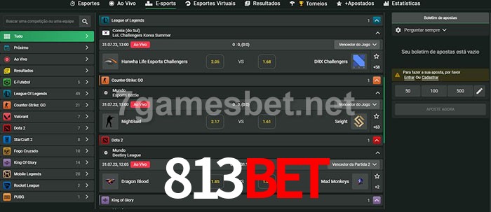 O 813Bet oferece uma grande seleção de opções de apostas em e-sports com probabilidades competitivas